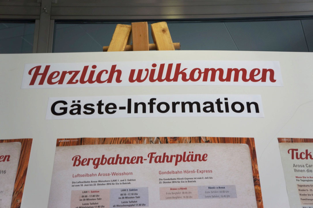 in the German word Gaste-Information which translate to Guest Information, indicates where locals, hikers, and the